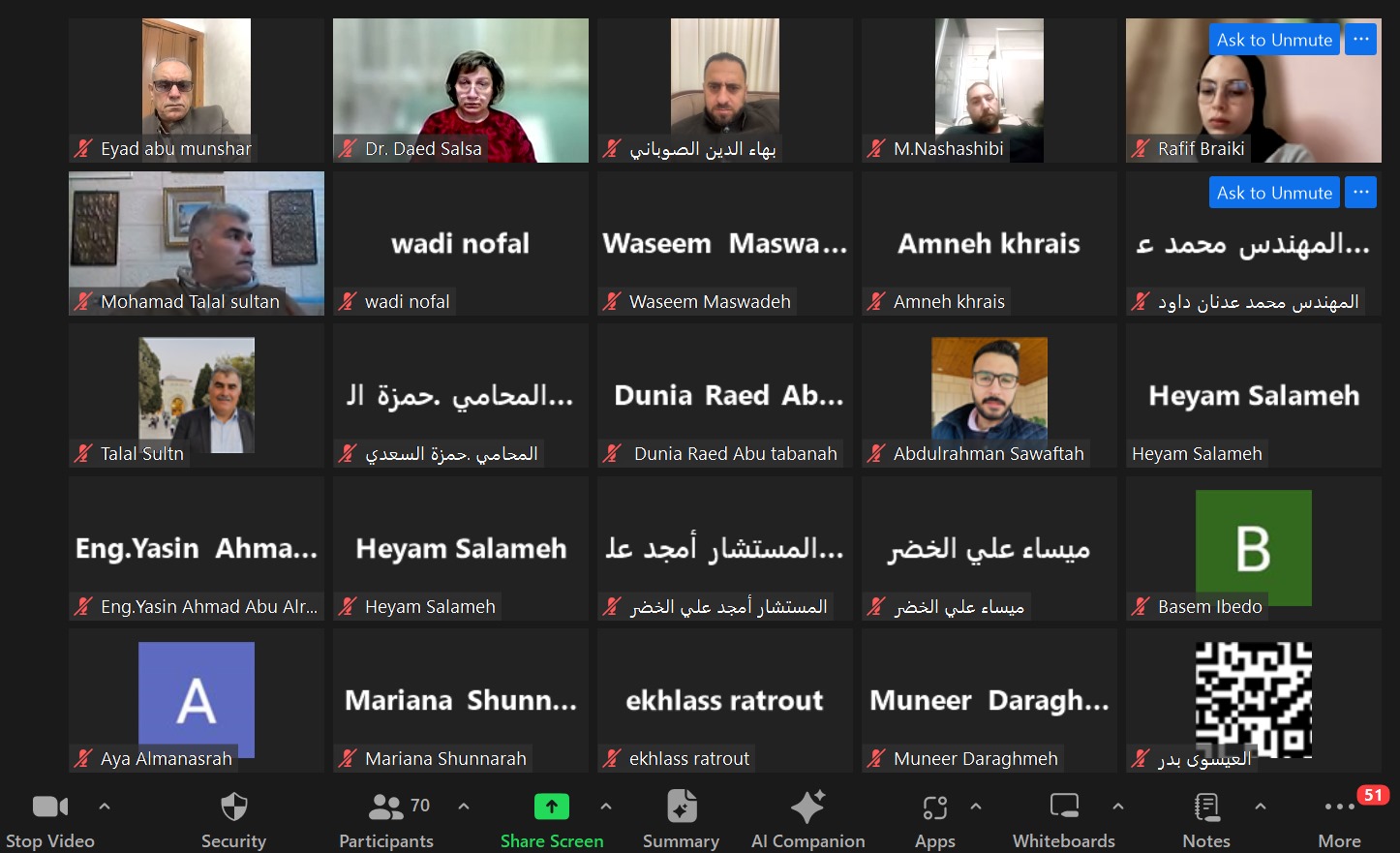 يحدث الآن في برنامج دار الوساطة والتحكيم الفلسطينية وجامعة فلسطين التقنية خضوري “مبادىء ومهارات التحكيم، والتحكيم الهندسي” ومن خلال مدربين مركز خليج العقبة للاستشارات والتحكيم الدولي الدكتور ياسر احمد العجلوني.