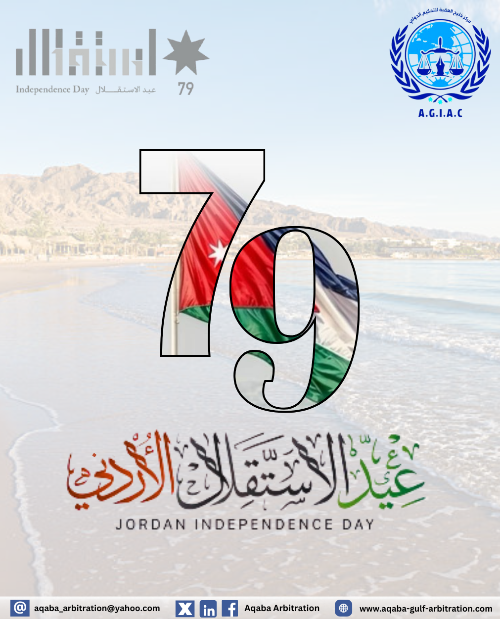 يتقدم مركز خليج العقبة للاستشارات والتحكيم الدولي بأسمى آيات التهاني والتبريكات إلى القيادة الهاشمية والشعب الأردني العظيم، بمناسبة عيد الاستقلال79 للمملكة الأردنية الهاشمية. في هذا اليوم العظيم، نستذكر بفخر تضحيات الأوائل الذين صنعوا الاستقلال، ونُجدد العهد على مواصلة العمل والإخلاص…