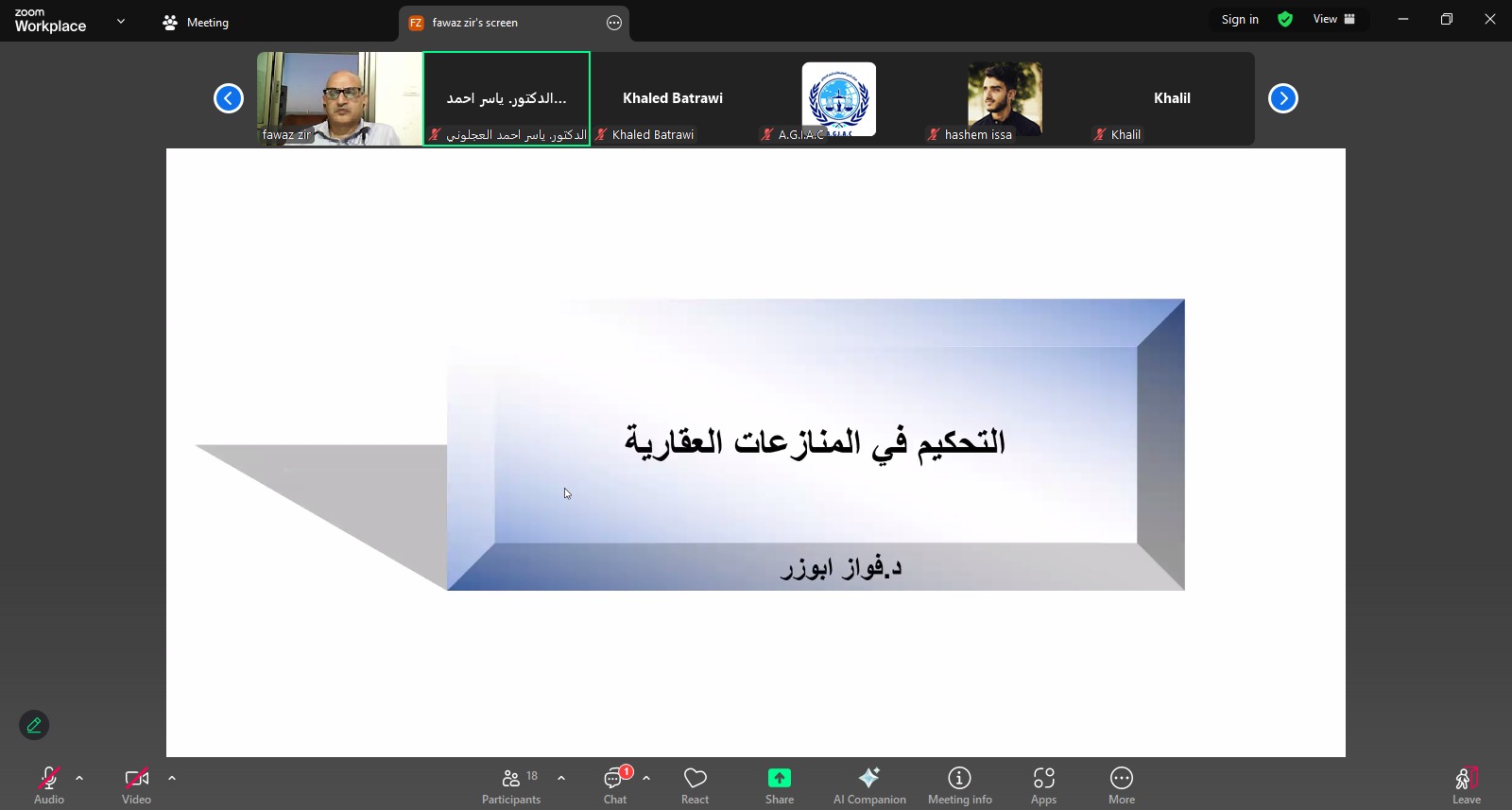 عُقدت مساء اليوم الاحد 2025/07/06 الجلسة الخامسة من البرنامج التدريبي “أساسيات فض المنازعات العقارية – التحكيم نموذجًا” عبر الفضاء الرقمي zoom، بمشاركة موظفين وطلبة دراسات عليا من دولة فلسطين الشقيقة ولبنان . خصصت الجلسة لشرح إجراءات العملية التحكيمية مع التركيز…