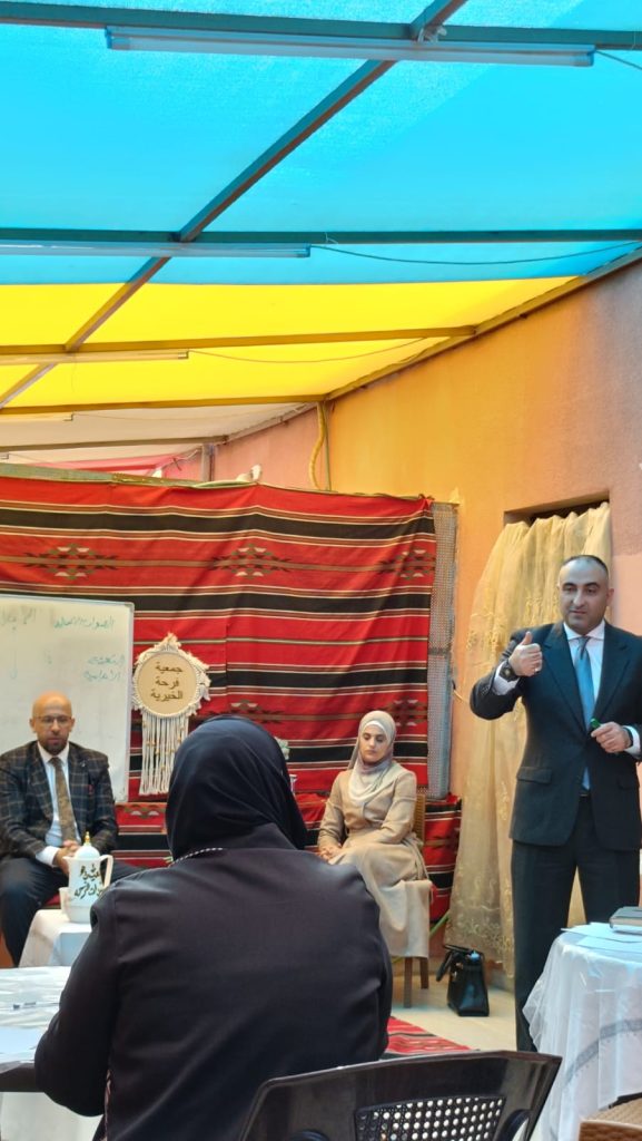 عقدت جمعية سيدات فرحة الأعمال الخيرية بالتعاون مع مركز خليج العقبة للاستشارات والتحكيم الدولي وضمن برنامجه Meta Law، جلسة توعوية بعنوان “أمانك الرقمي… قرارك”، وذلك ضمن فعاليات حملة 16 يوم لمناهضة العنف ضد النساء، اليوم الثلاثاء 2025/12/09.
