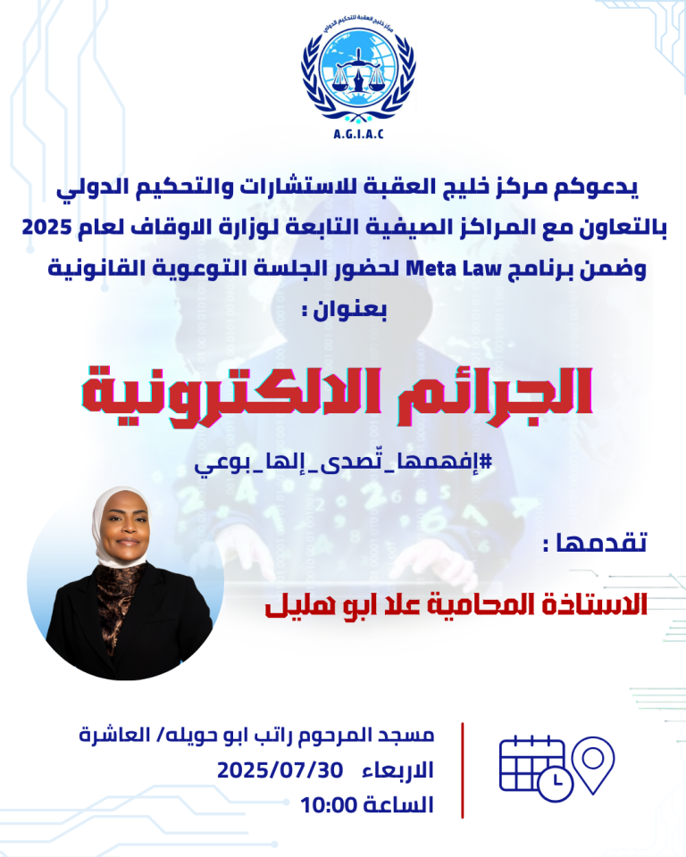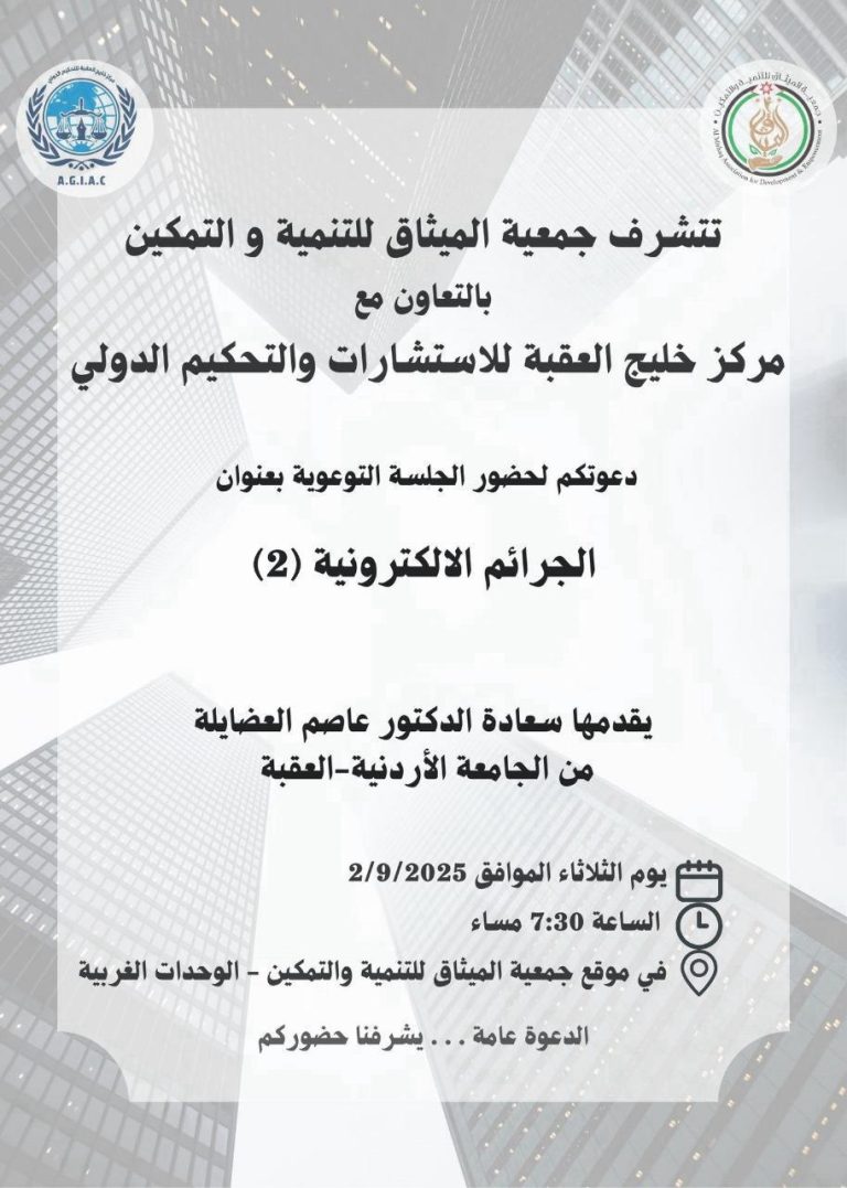 عقدت جمعية سيدات فرحة الأعمال الخيرية بالتعاون مع مركز خليج العقبة للاستشارات والتحكيم الدولي وضمن برنامجه Meta Law، جلسة توعوية بعنوان “أمانك الرقمي… قرارك”، وذلك ضمن فعاليات حملة 16 يوم لمناهضة العنف ضد النساء، اليوم الثلاثاء 2025 تناولت الجلسة محاور…